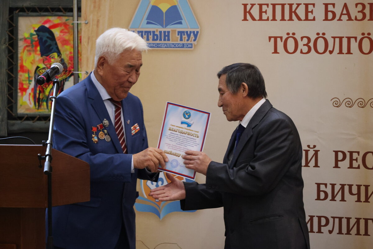 На первом фото Владимира Сухова: Б.К. Алушкин вручает Благодарственное письмо Т.Т. Яйтынову