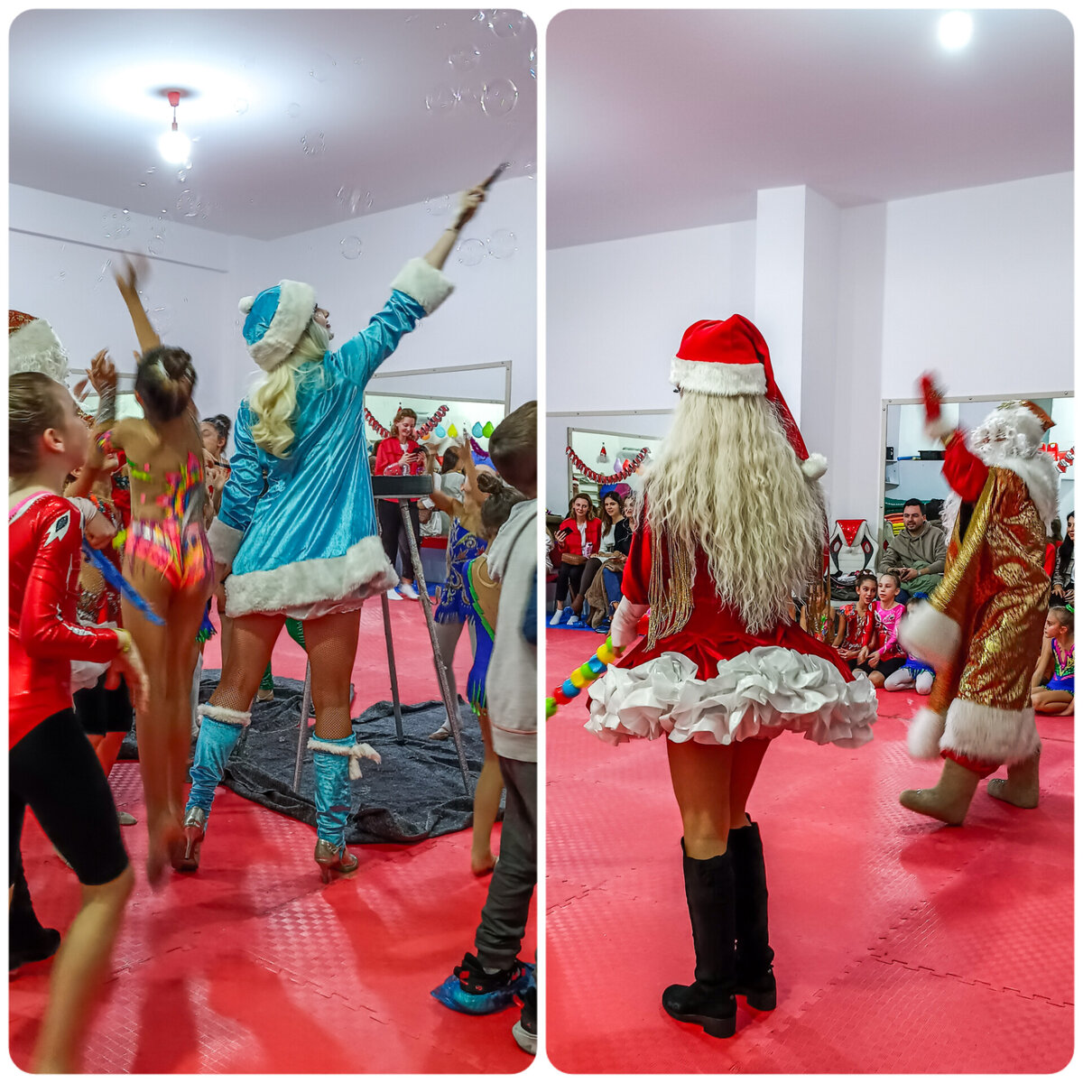 Вчера у младшей дочки состоялась новогодняя гимнастическая вечеринка. Потому что мероприятие стартовало в 7 вечера. Участие принимали младшая группа (возраст 4-7 лет) и наша старшая группа (8-10 лет). Также присутствовали родители в качестве с̶в̶и̶д̶е̶т̶е̶л̶е̶й̶ зрителей и группы поддержки. Турок было больше 2/3. Поначалу всё было чинно и благородно. Дети коллективно выступили, все красивые, очень старались. А потом русскоязычные дети позвали Деда Мороза, турецкие – Ноэля Баба. Тот появился в сопровождении Снегурки в очень короткой шубке, в гольфах и на каблуках. Сам Дед был упакован в золотой кафтан, рукавицы, голова – в белый лохматый волосато-бородатый парик, на ногах – реальные валенки. Наверное, для турецкой части аудитории он выглядел максимально диковинно: как если бы некий уважаемый аксакал (Белая Борода) накатил ракы, облачился в парадный кафтан султана и надел заматеревшие поседевшие мужские носки, чтобы не замёрзнуть в суровые эгейские +20°С (+16°С вечером). Фоном