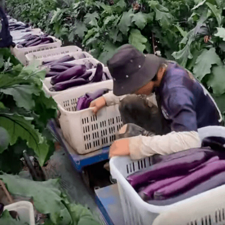 Фермеры из Китая придумали, как сразу собрать и вывезти с поля урожай. Их изобретение кажется гениальным. Фото: 120.su Чтобы не ходить и не собирать баклажаны, а потом отдельно не вывозить их, фермеры придумали подобие поезда. На тележки они поставили ящики, куда складывают баклажаны, а затем поезд увозит урожай с плантации, пишет 120.su. К слову, сборщики и сами ездят на поезде, что наверняка облегчает им работу. Пользователи интернета похвалили находчивых фермеров за идею и посмеялись над тем, насколько забавно выглядит баклажанный поезд. Читайте также: Какие продукты с плесенью можно есть без вреда для здоровья – рассказывает эксперт Названы продукты, которые нельзя есть с мандаринами Девушка похудела на 54 килограмма с помощью одного простого блюда