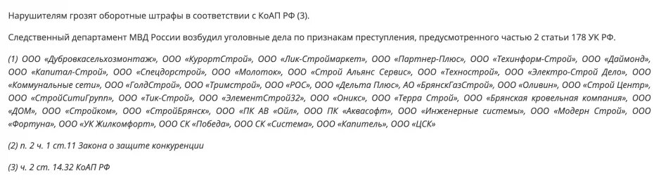 Федеральная антимонопольная служба России сообщила о раскрытии двухмиллиардного картельного сговора в Брянской области. Успешная реализация стала возможна в результате межведомственного взаимодействия.