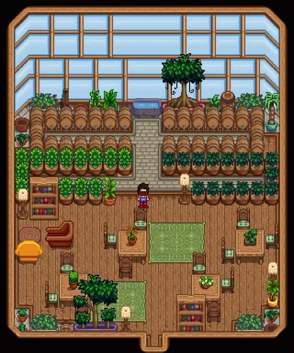 Игрок Stardew Valley превратил теплицу в кафе со стеклянными стенами и потолком