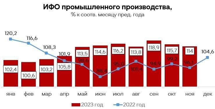 С учетом текущей динамики рост промышленного производства по итогам 2023 г. ожидается на уровне 109%, в том числе в обработке — 110%, — отметил замгубернатора.
