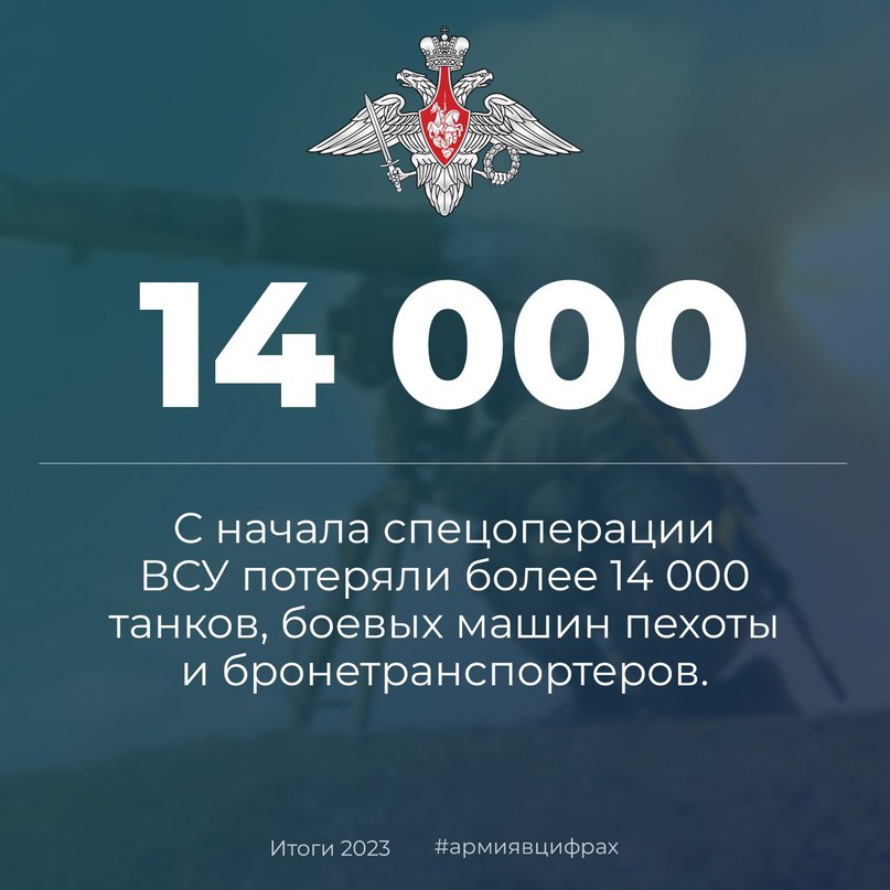 С начала спецоперации ВСУ потеряли более 14 000 танков, боевых машин пехоты и бронетранспортёров