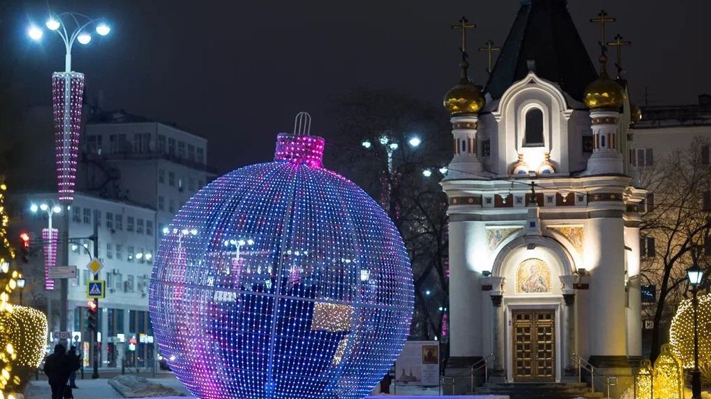 В самом центре Екатеринбурга у часовни святой Екатерины начал работать пятиметровый мультимедийный «Новогодний шар». Он украшен 50 тысячами светодиодов. Каждые десять секунд на арт-объекте появляется один из 23 праздничных узоров и поздравление с Новым годом и Рождеством. Деревья рядом с шаром украсили гирляндами, которые создают ощущение тепла, окутывая все вокруг мягким желтым светом. Еще один гигантский новогодний шар появился в парке Энгельса. Он же в этом году полностью реконструировал пространство парка. Кроме того, световые композиции традиционно установлены у храма Большой Златоуст и храма Иннокентия Московского. Отметим, что Фонд святой Екатерины уже несколько лет украшает столицу Урала к Новому году и Рождеству. Екатеринбург, Елена Васильева Новость на сайте / Больше новостей