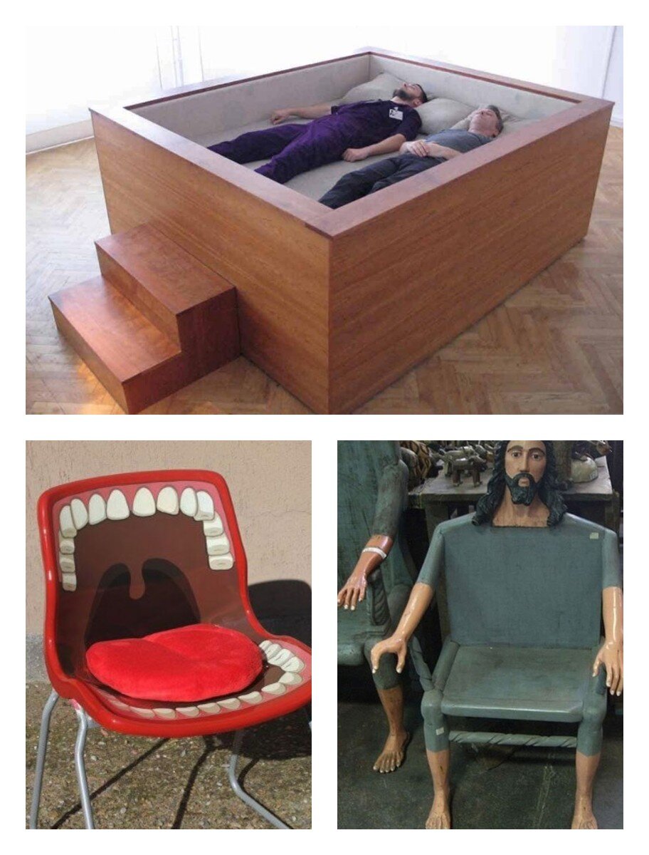 По всей видимости, эти решения мебельной индустрии люди с креативным мышлением вынашивали в голове ни один день. Их дизайн настолько необычен и смел, что не может не вызывать искреннего восхищения. Хотя некоторые из них граничат с сумасшествием. Сначала небольшое отступление. За окном - зима, а именно в это время года почти в каждом человеке просыпается художник и дизайнер. Людей хлебом не корми – дай что-нибудь из снега слепить. И это не только снеговики. Причём, эта забава привлекает не только детей, но и взрослых. К примеру, так нескучно и с выдумкой решил провести свои выходные житель из Сыктывкара. Лепить квартирный интерьер ему помогала жена. Эта мягкая игрушка не поместилась в "общий ансамбль". Что ж теперь добру пропадать? ....Принцев нет, доходят только кони То, что связано с животными - также не редкость в дизайне мебели. Причём не обязательно делать стулья и кресла – к примеру, чудаковатые журнальные столики со львом и светильники в форме собаки также находят своего покуп