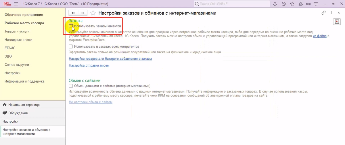 Как настроить раздел «Заказы и обмен с интернет-магазином» в 1С:Кассе