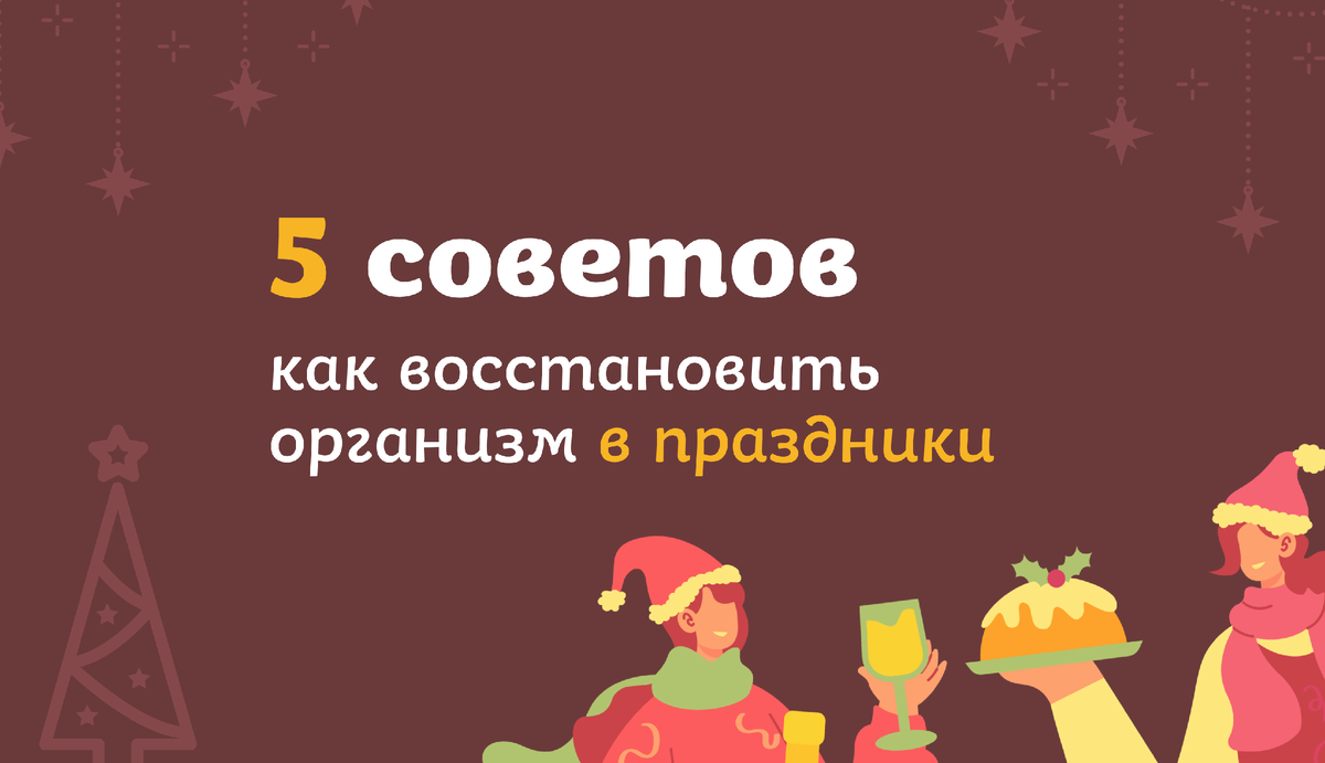 Главный совет: лучше пожалейте свой организм заранее и придерживайтесь более-менее ровного режима на протяжении всех праздников – ложитесь и вставайте не поздно, питайтесь более-менее правильно (овощи, фрукты, варёная и печёная еда), а воды пейте больше, чем алкоголя. И тогда вы будете чувствовать бодрость на протяжении всех праздников и – вот приятная новость! – ничего восстанавливать не потребуется.