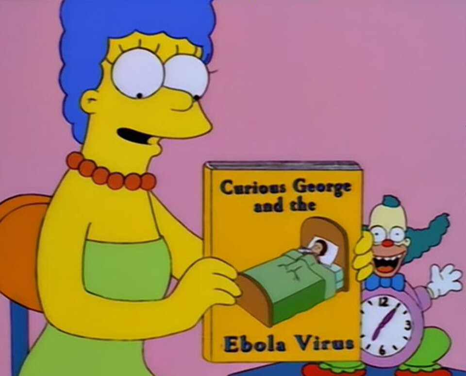 Очень много слухов о том , что создатели "Симпсонов" предсказывали и знают будущее, но так ли это давайте разберёмся. И начнем с эпидемии Эболы . 1. ЭПИДЕМИЯ ЭБОЛЫ. 19 октября 1997 года вышел 9 сезон 3 серия мультсериала "Симпсоны". В ней есть фрагмент , где Мардж предлагает прочитать Барту книгу "Любопытный Джордж и вирус Эбола". И так самая страшная вспышка Эболы произошла в 2014 году. (И многие заговорили , что это предсказывали "Симпсоны" 17 лет назад, но это не так). В 1976 году вирус был впервые индифицирован . Назван в честь реки , где была первая вспышка. И только в 90-х годах о ней заговорили в газетах. И естественно "Симпсоны" не обошли это стороной и решили высмеять Эболу в одной из своих серий. 2.Виртуальная реальность. В 1998 году в одной серии показали очки виртуальной реальности. Но в 1962 году запатентован " отец виртуальной реальности" под названием "Sensorama". 3. Умные часы. Умные часы - показали в 1995 году. Но умные часы появились раньше , например, SEIKO-