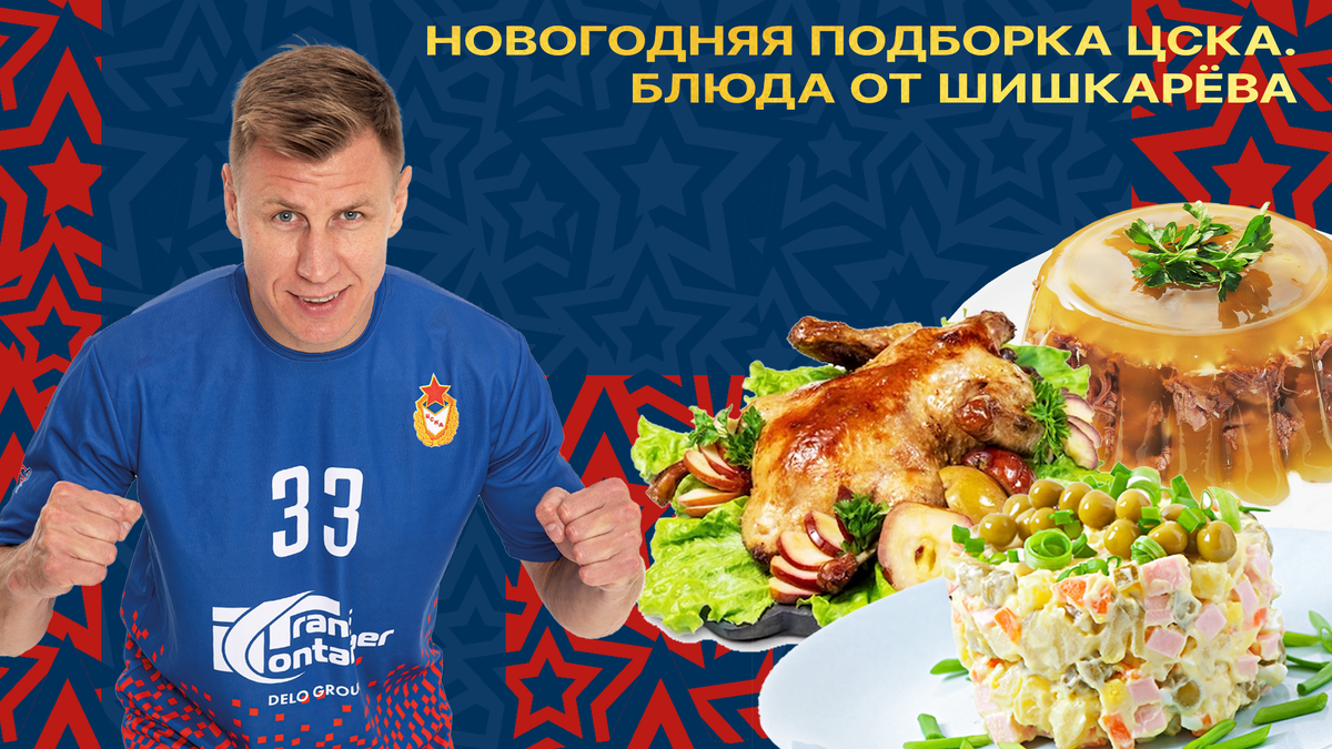И снова говорим о новогодних предпочтениях гандболистов ЦСКА! На этот раз о своих любимых праздничных блюдах рассказывает наш капитан Даниил Шишкарев. Салат «Оливье» Это стопроцентно новогодняя еда, примерно такая, как мандарины. Вообще, после 30 лет я стал очень внимательно следить за питанием, в некоторых вещах ставлю ограничения, но в праздники могу побаловать себя традиционным новогодним салатом с майонезом. Запеченная утка Ее очень вкусно делает моя мама. Каждый Новый год у нас на столе есть это блюдо, если только мы не встречаем год, когда нельзя готовить дичь. На приготовление у мамы уходит весь день 31-го декабря, и непосредственно перед застольем она с таким волнением выносит эту утку в ожидании – вкусно получилось или нет. Но вкусно получается всегда! Холодец Тоже чисто новогодняя забава, на мой взгляд. Я вспоминаю детство, когда его готовили самостоятельно, и это был довольно кропотливый процесс. Но зато холодец всегда получался вкусным! Признаюсь честно, что сам я сейч
