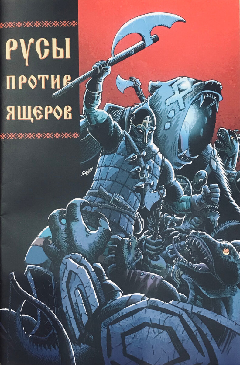 "Русы против Ящеров". Чинов Д., Шевердин Р., Кондратьев А., Косых Е., Абрамов Я., Елецкий Д., Герасимов Е., Доронина Е., Майер А. - Москва: ИП Котов А.В./Alpaca, 2024. - 32 с.: ил. 📖 ИСТОРИЯ Их три. Сводятся воедино в Эпилоге, намекающем на продолжение в… космосе ;). Рассказывали эти истории по-разному: Дмитрий Чинов (просто месилово), Александр Кондратьев и Егор Косых (эротика и предательство, мочилова нет - приквел), Ярослав Абрамов и Дмитрий Елецкий ("Троянский конь" по-словянски). 🎨 ГРАФИКА Разная, поскольку работал сонм художников: Роман Шевердин (опять показалось перегруженным деталями и плотным цветом); Егор Косых (анимешной эротики - с избытком); Егор Герасимов, Елена Доронина и Анастасия Майер (стильно, просторно, колоритно - понравилось). 🔥 ВЫВОД Я, конечно, понимаю, что это стёб, трэш и угар… Оттянулись ребята по полной, но… Видимо, не моё уже/ещё :(. По мне так это - для озабоченных тинейджеров, инфантильного офисного планктона и, возможно, впавших в детство стариков ;)