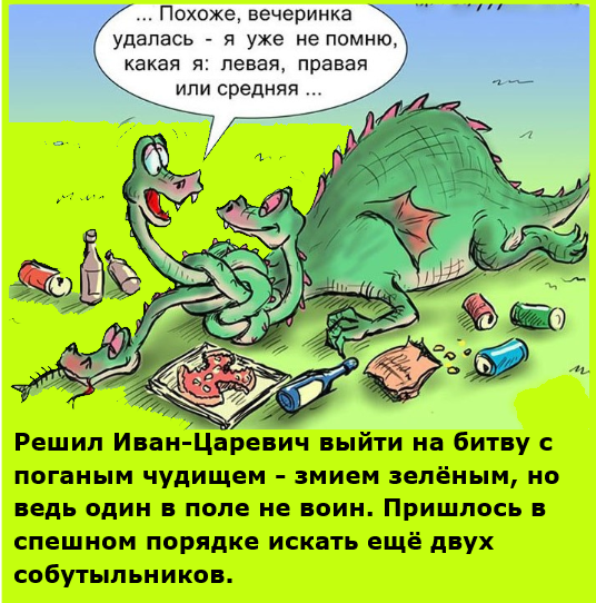 Дорогие мои друзья, спешу принести спешные извинения - в предыдущей теме я указала, что следующий год будет годом Огненного Дракона - так мне и многим другим телезрителям по телеку кто-то сказал. Но теперь по телеку говорят совсем другое и вы, мои дорогие друзья, уже указали на мою оплошность и легковерие сведениям, которые вначале надо бы хорошенько проверить! Я исправляюсь и публикую АНЕКДОТЫ ПРО ЗЕЛЕНОГО ДРАКОНА - символ наступающего года. И кстати, этот дракон, оказывается, еще и деревянный - ничего не напоминает, а? Ну таки да - зеленый Змей, да еще и в дрова... Не наши ли это родные реалии? И не годом ли России будет наступающий 2024? Кстати, а почему у нас Змей Горыныч о трех головах, а во всех прочих странах ихние летающие рептилии ограничиваются всегда одной? На этот животрепещущий вопрос мы и постараемся ответить в нашей последней в этом году подборке анекдотов Во-первых Драконы не чужды современным тенденциям в области зависания в соцсетях: Во-вторых, эти существа гораздо ин