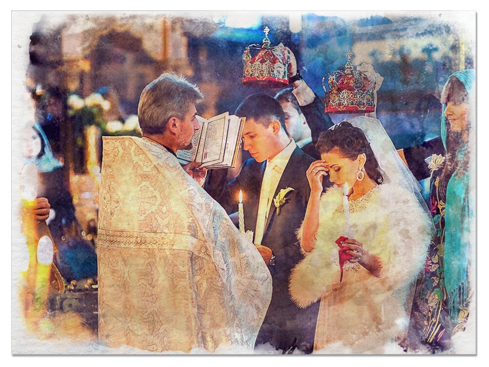 Потом они поехали к церкви, там их уже всё ждали. Боря и Надя стояли перед Священником, а он что-то делал, говорил и на них надели короны.