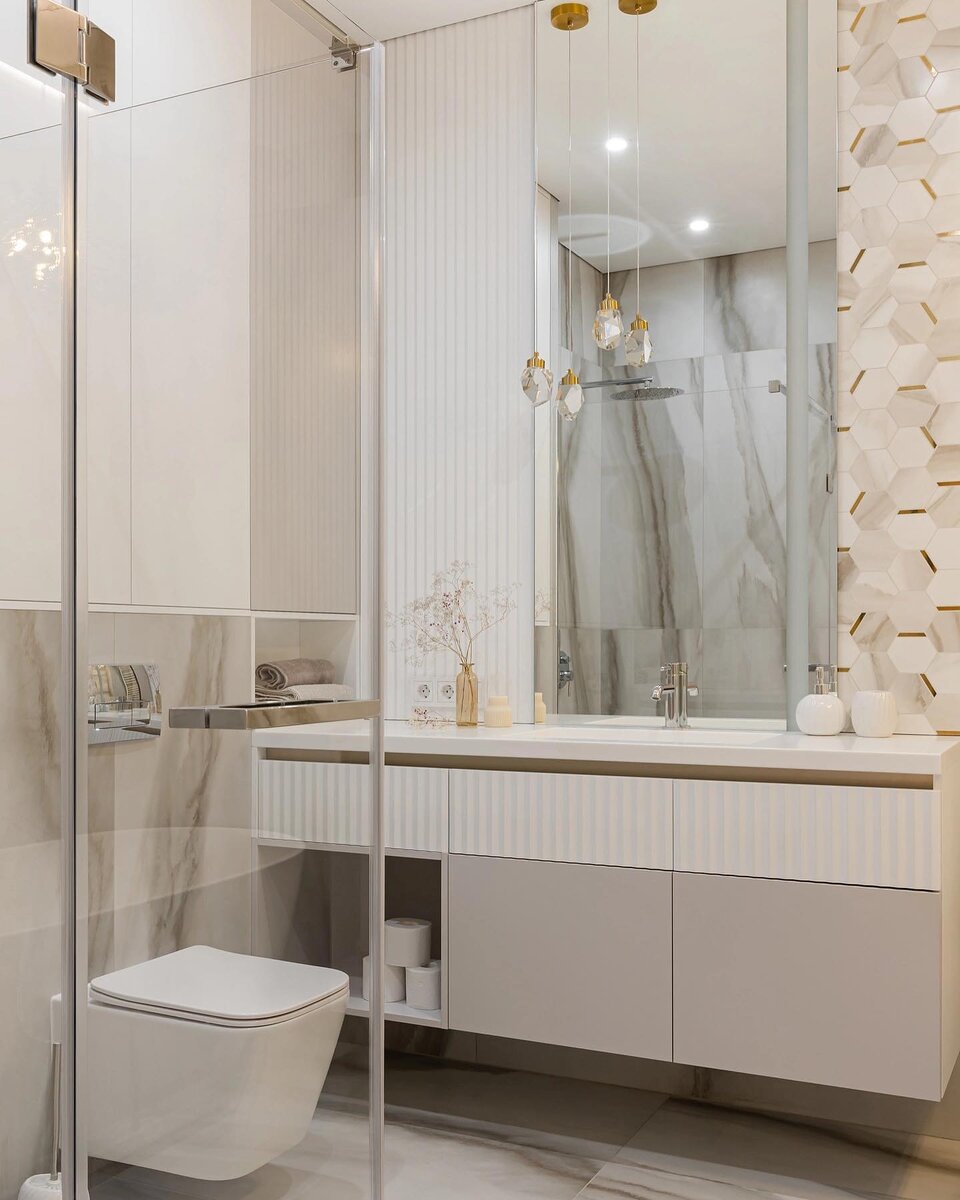 Может создать светлую и просторную атмосферу в помещении. Вот несколько предложений: 1. Керамогранит "Белый мрамор" - имитация натурального мрамора с белыми и серыми оттенками. Он придает ванной комнате роскошный и изысканный вид. 2. Керамогранит "Светлый дерево" - имитация светлого дерева с натуральным текстурным рисунком. Этот вариант добавит теплоты и уюта в вашу ванную комнату. 3. Керамогранит "Бежевый камень" - имитация натурального камня с бежевыми оттенками. Он создает нейтральный и спокойный фон, который хорошо сочетается с разными стилями интерьера. 4. Керамогранит "Светлый шелк" - имитация шелка с белыми и кремовыми оттенками. Он добавит нежности и элегантности в вашу ванную комнату. Выбор керамогранита в светлых тонах зависит от вашего стиля и предпочтений. Рекомендуется выбирать материалы, которые легко чистятся и устойчивы к влаге, чтобы обеспечить долговечность и практичность ванной комнаты. ▪️Доставка/самовывоз г. Москва ТЦ.СЛАВЯНСКИЙ СТАН 1.15. Тел. +7(499)113-41
