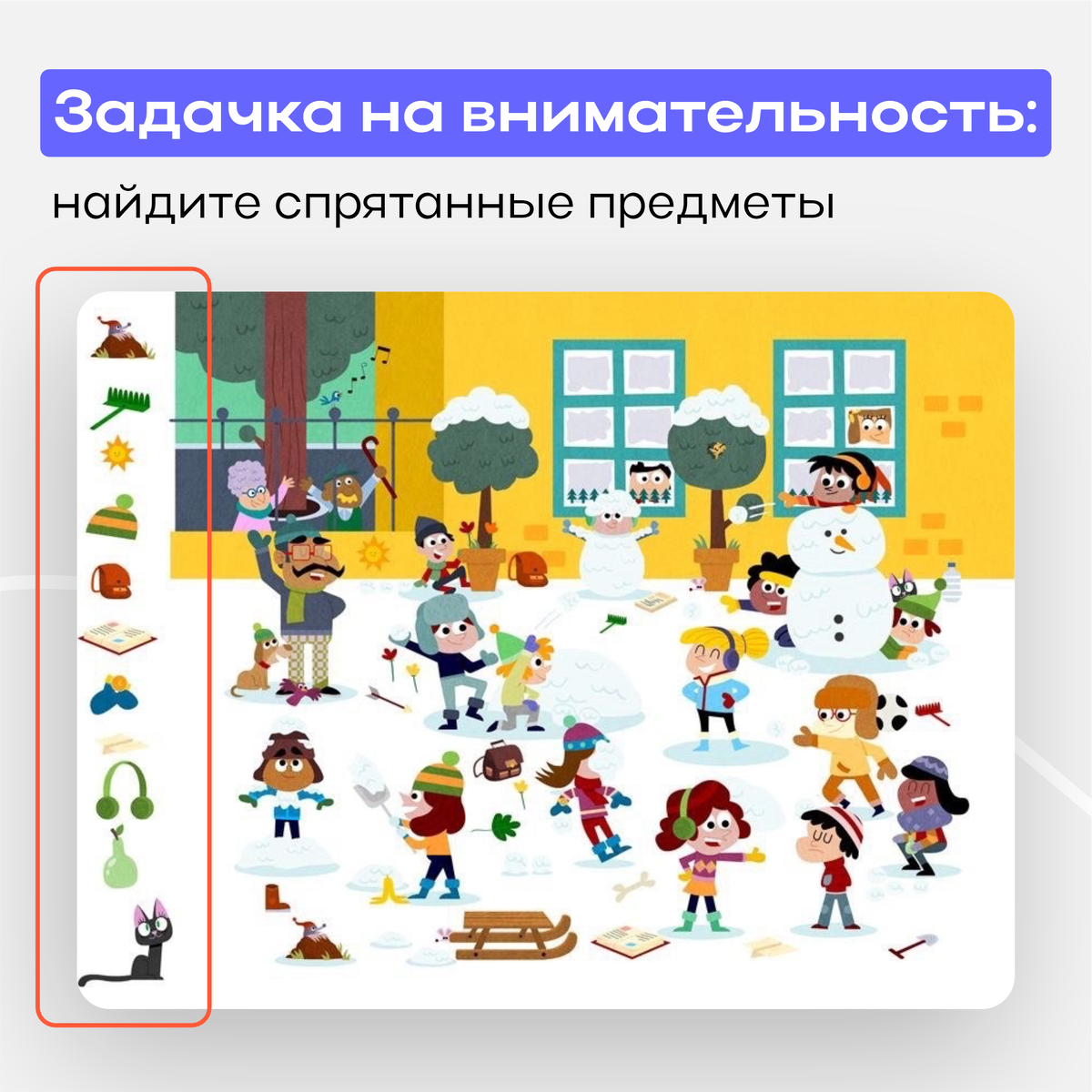 Давайте поиграем! Найдите все спрятанные предметы на картинке.