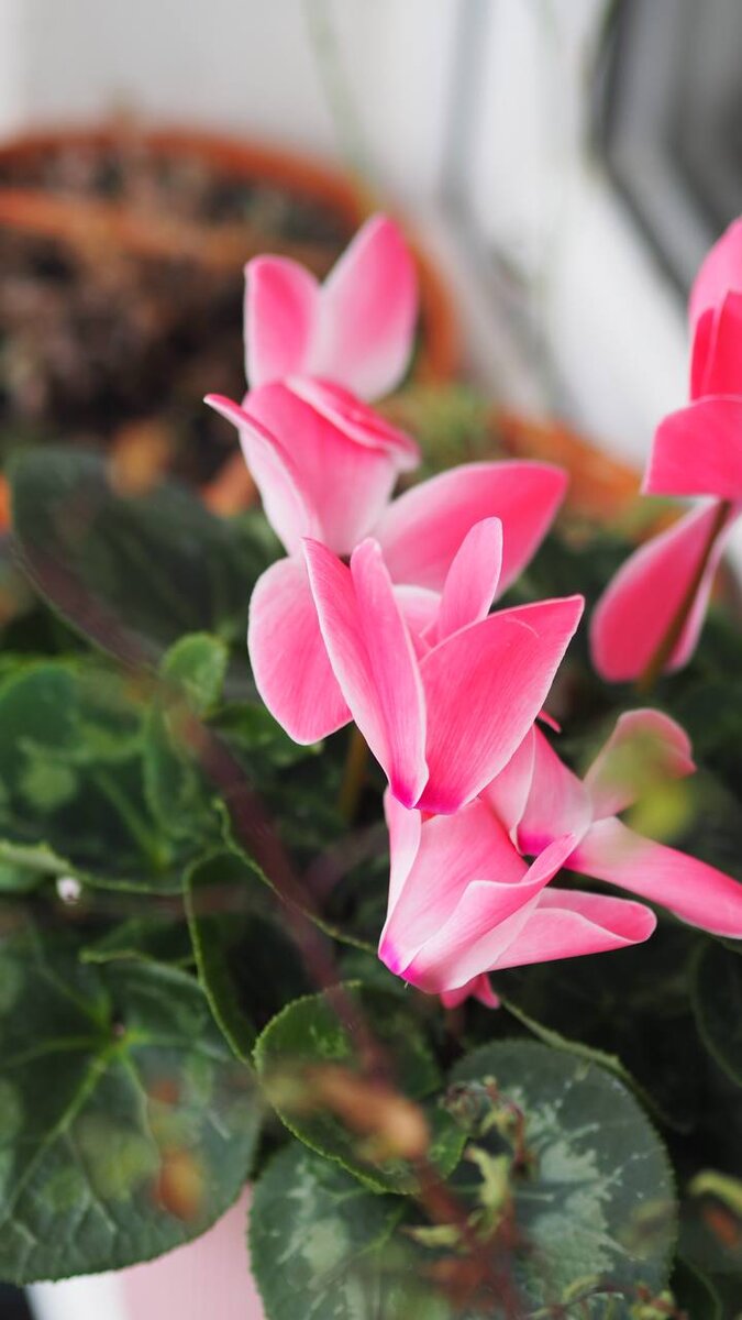 На балконе появилось одно из редких растений сада - цикламен. Почему на балконе? Потому что в доме, где центральное отопление, когда его поставили на подоконник, он сразу поник. Сейчас, при температуре +10°, он прекрасно себя чувствует на внешнем подоконнике кухни. Так кто же ты цикламен? На фотографии скорее всего представлен цикламен персидский, именно он более всего пригоден для выращивания в домашних условиях. Не смотря на свое название, этот цикламен родом не из Персии, а с острова Кипр. Цикламен растение из первоцветных, в наших садах может расти, но при особых почвенных условиях и с лёгким укрытием на зиму. Необходимость этого связана с тем, что клубни его наполовину торчат из земли, и именно в верхней части клубня весной развиваются среди зимующих листьев цветы. Но вернёмся к нашему цикламену на балконе. Безусловно он стал украшением среди других многолетних растений. Что с ним правильно будет сделать? Найти ему самое светлое и холодное место 7,5-12,5°С. В это время расте