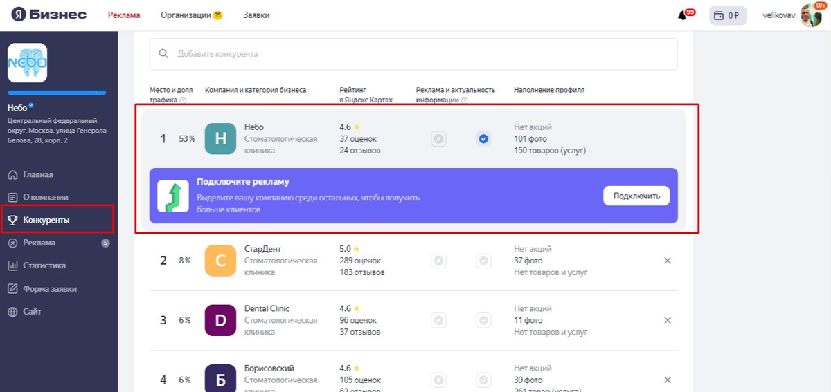 Итог нашей работы по продвижению стоматологии в Москве на Яндекс картах