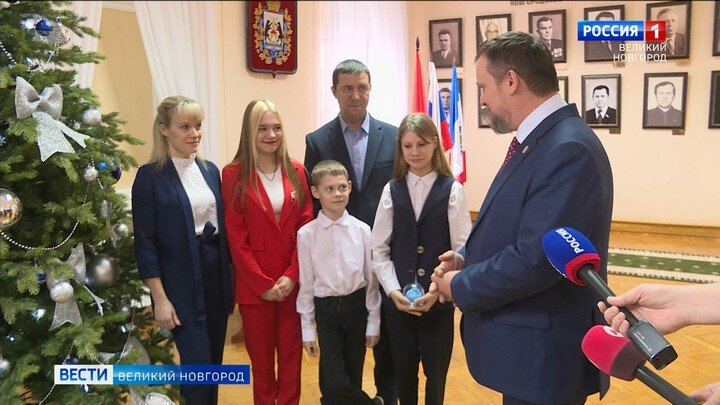 Губернатор Андрей Никитин встретился с многодетными семьями Лысенко и Мехтиевых. Шары с пожеланиями от ребятишек глава региона снял на Елке желаний. И вот сегодня поздравил с наступающим праздником пятиклассника Ивана Лысенко, пожелавшего получить ноутбук, и преподнес подарки Полине, Арине и Алексею Мехтиевым.