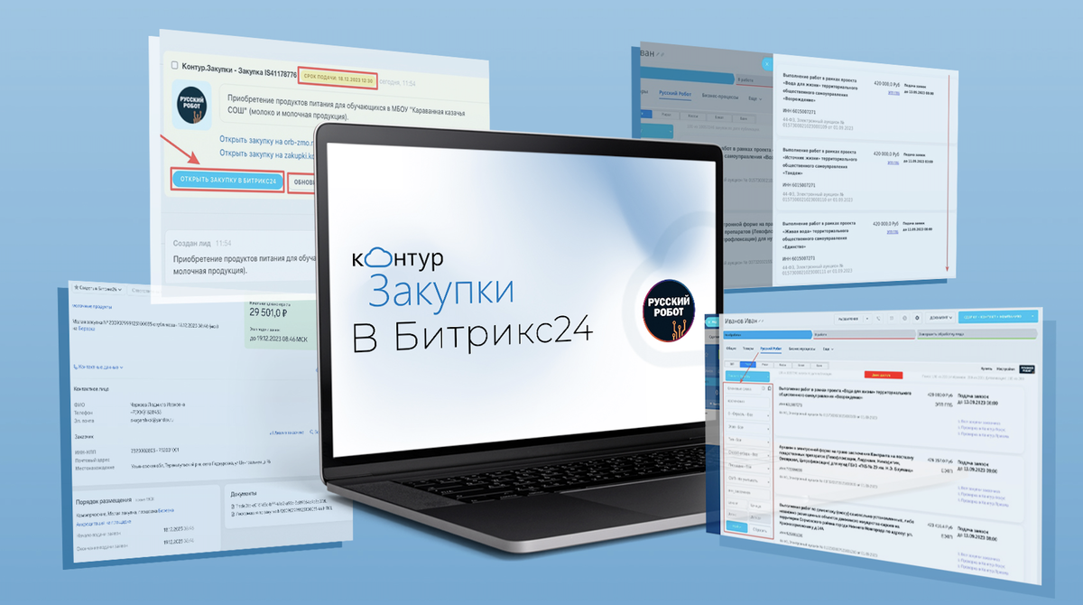 С помощью программы Русский робот можно работать с базой Контур.Закупки из любой сущности CRM Битрикс24. Сервис позволяет: