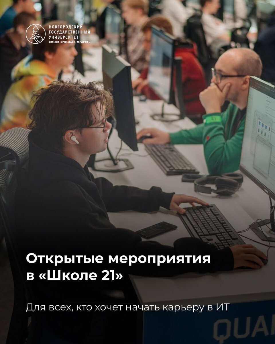 Мечтаете построить карьеру в ИТ-сфере и ИТ-предпринимательстве? Приглашаем принять участие в мероприятиях, которые посвящены старту первой волны основного обучения в новгородском кампусе «Школы 21».