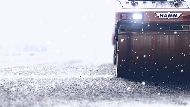 В Нижегородской области продолжают укладку дорожного покрытия в снег