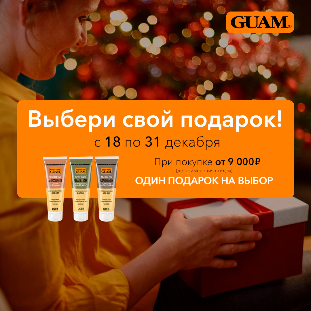 Только в интернет-магазине GUAM.RU с 18 по 31 декабря при покупке от 9 000* рублей ОДИН ПОДАРОК 🎁 НА ВЫБОР: 💗 Маска для лица лифтинг-эффект против морщин с коллагеном водорослей FANGHI D’ALGA, 75 мл / Для чувствительной, склонной к сухости кожи 💚 Маска для лица моделирующая тонизирующая с коллагеном водорослей FANGHI D’ALGA, 75 мл / Для всех типов кожи, особенно для кожи, склонной к отёчности 🖤Маска для лица питательная восстанавливающая с коллагеном водорослей FANGHI D’ALGA, 75мл / Для комбинированной кожи, склонной к жирности и акне *** Сияйте красотой! Получайте от покупок удовольствие! Ваш GUAM!❤️ *Сумма указана до применения скидки