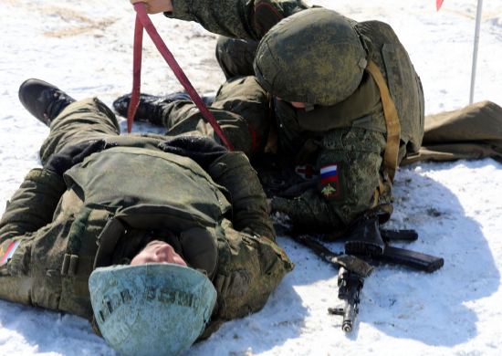 С медиками Балтийского флота проведена тренировка по эвакуации раненых с поля боя