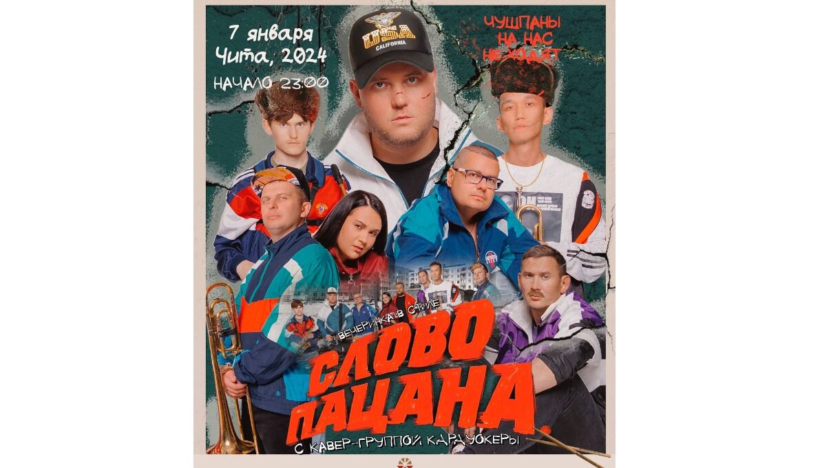 О задумке читинского бара расскажет «Царьград». Читинские коммерсанты решили воспользоваться бешеной популярностью сериала «Слово пацана» и организовать вечеринку в стиле 90-х. Один из баров забайкальской столицы ждет поклонников киноленты 7 января, за два часа до полуночи. Предупреждают, что кого попало не пускают. Так называемым чушпанам вход закрыт. Этим словом 80-е годы ХХ века презрительно называли чужаков, тех, кто не состоял в молодёжной группировке. После выхода на экраны сериала «Слово пацана. Кровь на асфальте» оно снова в ходу. Внешний вид гостей вечеринки должен говорить сам за себя. Слишком юным ребятам, чтобы быть лично и хорошо знакомыми с субкультурой того времени, они предлагают одолжить одежду отцов. На входе действует дресс-код. Впрочем, в конце афиши есть пометка – что можно прийти и в обычной одежде, но тогда не видать подарков от паба. В развлекательном заведении обещают обеспечить соответствующий антураж и украсить помещение с использованием атрибутики из 80-90-ы