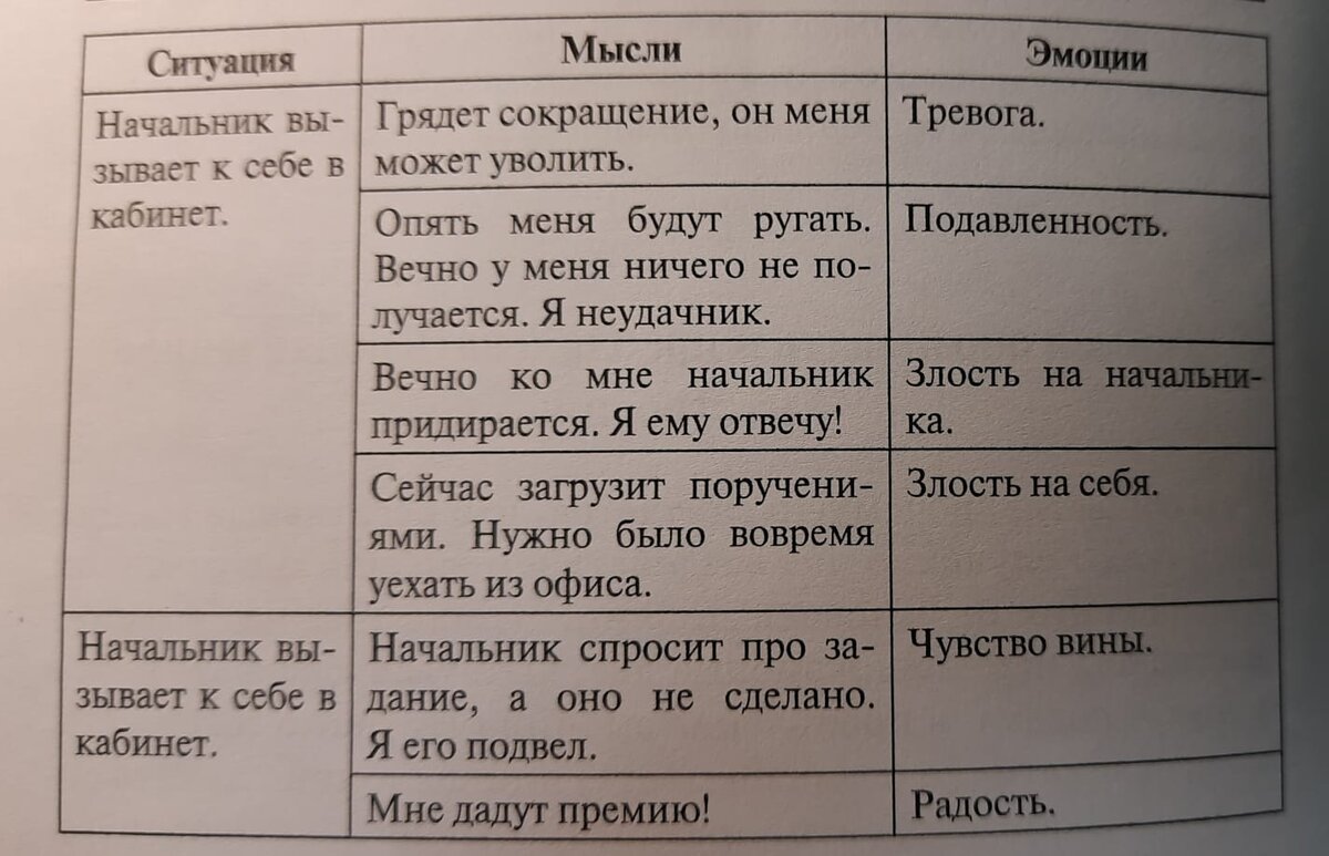 Часто особенности нашего мышления мешают нам выходить из депрессии, даже если мы принимаем лекарства по назначению врача. То же самое касается и субдепрессивных состояний (уныния и подавленности, не достигающих уровня клинической депрессии). Говоря об особенностях мышления, я имею в виду автоматические мысли. Это одно из базовых понятий когнитивной психотерапии (ориентированной на работу с мыслями, ожиданиями, установками). Сегодня я расскажу о том, как это работает и почему важно менять привычные паттерны мышления. Как мысли влияют на наше самочувствие? При чем тут мысли? Большинство людей уверены, что их настроение и благополучие зависят от внешних событий. И вроде бы это правильно. Например, если на вас ругается начальник, то вы должны расстроиться, верно? Если принять это утверждение за истину, то эта ситуация должна расстраивать всех. Однако это не так. Вспомните своих знакомых: кого-то сильно расстраивают неудачи, а кому-то вообще все равно - живет дальше, и все. Почему так? Да п