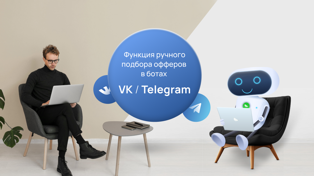 Представляем вам обновление в наших ботах - ручной выбор офферов! Вы можете разместить любые офферы по вашему желанию. Ручной подбор офферов уже доступен в BotTelegram, BotVK и BotLand. Как это работает? Вы можете переключиться на ручной режим при создании или редактировании бота. Перейдите в настройки витрины BotLand или бота для Telegram/VK или создайте нового: Выбрав и проверив все введенные выше параметры бота, в самом низу страницы редактирования выберите режим подбора офферов: Выберите типы офферов и укажите источник вашего трафика. Вы можете выбрать одну или несколько категорий офферов, таких как: займы, кредиты, дебетовая, кредитная карта, РКО, HR и онлайн курсы: Отметьте офферы, которые вы хотели бы подключить в вашем боте. Если оффер был приостановлен, то он не будет отображаться в списке предложенных, пока снова не возобновит работу. Например: На скриншоте видно, что оффер “Тинькофф Банк - дебетовая карта Lamoda” приостановлен. Такие офферы в списке офферов помечаются знаком