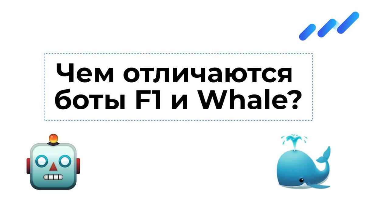 Команда maklerlab предлагает пользователям два варианта: роботы whales 🐳и F1 — вы сами можете выбрать, какой из них использовать.