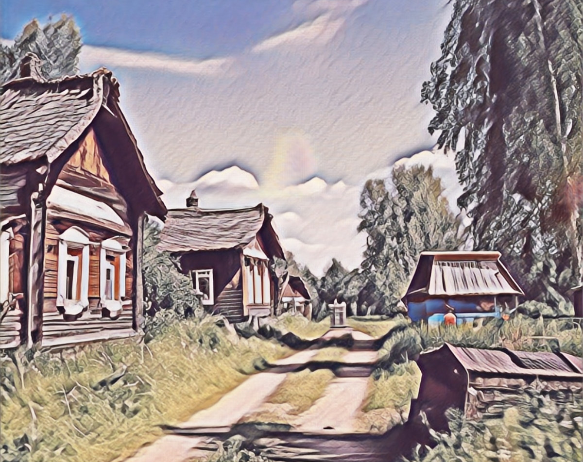 Людмила пишет сидя за сколоченным из досок столом посреди двора, а дед убирает в скирду высушенную траву и пытается сосредоточиться. Но в последнее время это к него получается не очень хорошо.