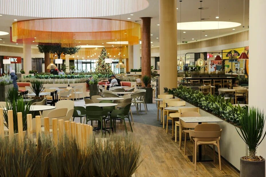На карте Рязани появилась новая локация, где можно провести досуг с семьей, назначить встречи с бизнес-партнерами или просто отдохнуть после рабочего дня. Открытие обновленного пространства для фудкорта — это один из этапов масштабной реконцепции рязанского ТРЦ «М5 Молл». «Мы вложили в проект идею уютного, комфортного и по-своему домашнего пространства для отдыха и общения. Архитектура предусматривает три уровня освещения, благодаря чему пространство получает максимум естественного света. Посадочные зоны и корнеры расположены в светлых пространствах с теплым светом, что позволяет полноценно отдохнуть. Мы старались создать такое пространство, чтобы у посетителей была возможность почувствовать себя не в здании, а на городской улице летом, для этого в обновлённой локации мы открыли стеклянные крыши» — отмечает пресс-служба ТРЦ «М5 Молл». Посетив многие страны мира, команда «Мармакс», которая является владельцем ТРЦ, изучила лучший опыт в строительстве и благоустройстве и работает со специ