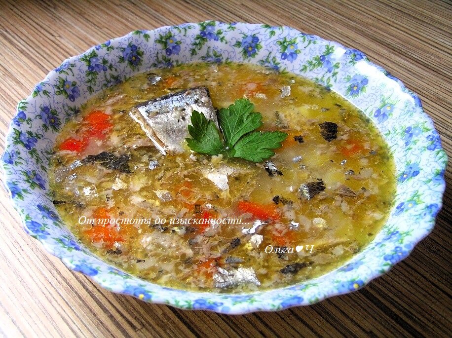 Картофель очистите, нарежьте, всыпьте в кипящую воду (кастрюля на 2-2,5 л), варите 10 минут. Лук и морковь произвольно нарежьте, обжарьте на растительном масле, добавьте нарезанный перец, обжарьте еще 4-5 минут. Сайру разомните вилкой, добавьте в суп. Затем добавьте в кастрюлю обжаренные овощи, лавровый лист, посолите, поперчите. Варите до готовности картофеля. Разлейте суп по тарелкам и подавайте с зеленью. Приятного аппетита! Вам также могут понравиться: