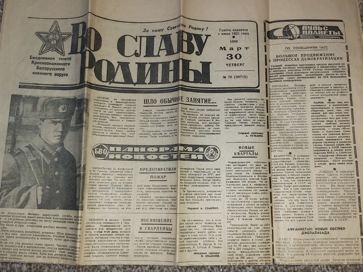 Вчера было 17 декабря. День ракетных войск стратегического назначения. Конечно, всех своих сослуживцев до кого смог дотянуться поздравил, но вот традиционной статьи по этому поводу не написал, так как имел очень напряженный день. С утра, в Химках стрелял Чемпионат Московской области, а вечером выступал на традиционной новогодней вечеринке «Цирк Party» в Раменском. В общем, носился по области как шпрот, можно сказать, что таким образом отмечал День тишины. Ну, а вот сегодня можно традиционно вспомнить дни службы, которые как писали в дембельских альбомах «Кто был, не забудет 730 дней в сапогах!». И ведь действительно так. Молодость, она не забывается. Сегодня хочу рассказать об одной из своих первых статей, которую я опубликовал в газете Белорусского военного округа «Во славу Родины». К своему удивлению, узнал, что она существует до сих пор и даже выходит с тем же логотипом, правда цветная. Так вот, в газету я послал статью, в которой описывал один случай, случившийся на нашей глухой