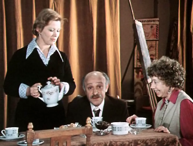 По семейным обстоятельствам. СССР, 1977. Режиссер Алексей Коренев. Сценарист Валентин Азерников (по собственной пьесе). Актеры: Галина Польских, Марина Дюжева, Евгений Стеблов, Евгений Евстигнеев, Евгения Ханаева, Николай Парфёнов, Владимир Басов, Ролан Быков, Анатолий Папанов, Нина Дорошина, Людмила Зайцева, Нина Агапова, Лев Дуров, Юрий Кузьменков и др. Премьера на ТВ: 29 апреля 1978.
