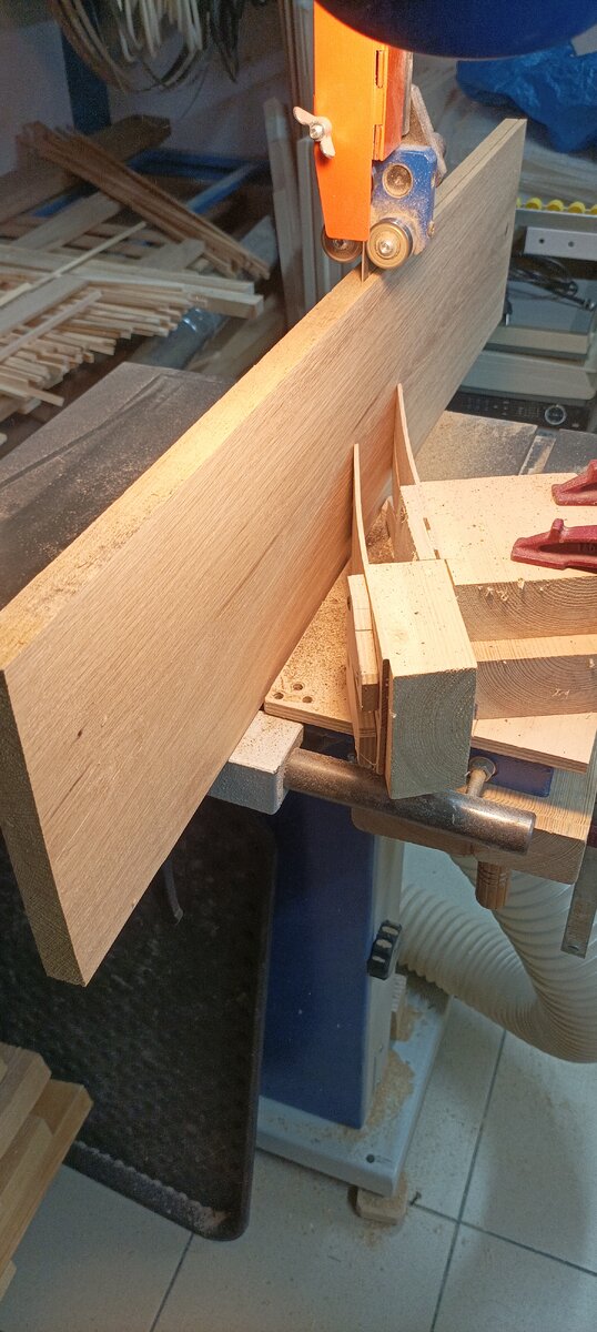 Понадобились заказчику подставки под акустику, которые производитель больше не поставляет. По фото снял размеры и приступил к процессу. Силовой набор будет из фанеры, фанерованной дубом, никаких "железок" (как в оригинале) для скрепления каркаса не будет, всё по честному - только клей, только "хардкор". :) Фугую, рейсмусую дубовую доску и пилю шпон. Полученное клею на заранее напиленные фанерные заготовки корпуса. Далее всё опиливается в размер и обносится дубовым бруском. Чтобы детали