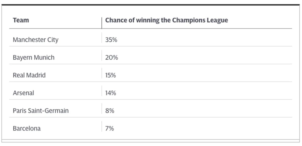 После того, как в Швейцарии была проведена жеребьевка 1/8 финала Лиги чемпионов, букмекерские конторы поспешили оценить шансы каждой из команд на главный европейский трофей. По их мнению, «Манчестер Сити» является фаворитом турнира и с вероятностью в 35% возьмет второй титул подряд. «Барселона» тоже попала в число фаворитов, но ее шансы, по мнению букмекеров, оцениваются всего в 7%. Вот как выглядят коэффициенты на победу в Лиге Чемпионов (по версии Bet365): У «Манчестер Сити» явно не должно возникнуть проблем на следующем этапе, ведь команде Пепа предстоит встреча с, пожалуй, самым слабым соперников 1/8, «Копенгагеном». На всякий случай напомним, как выглядят результаты жеребьевки: Вот все последние 16 пар ЛЧ: Как вы думаете, кто поднимет Кубок в этом сезоне?