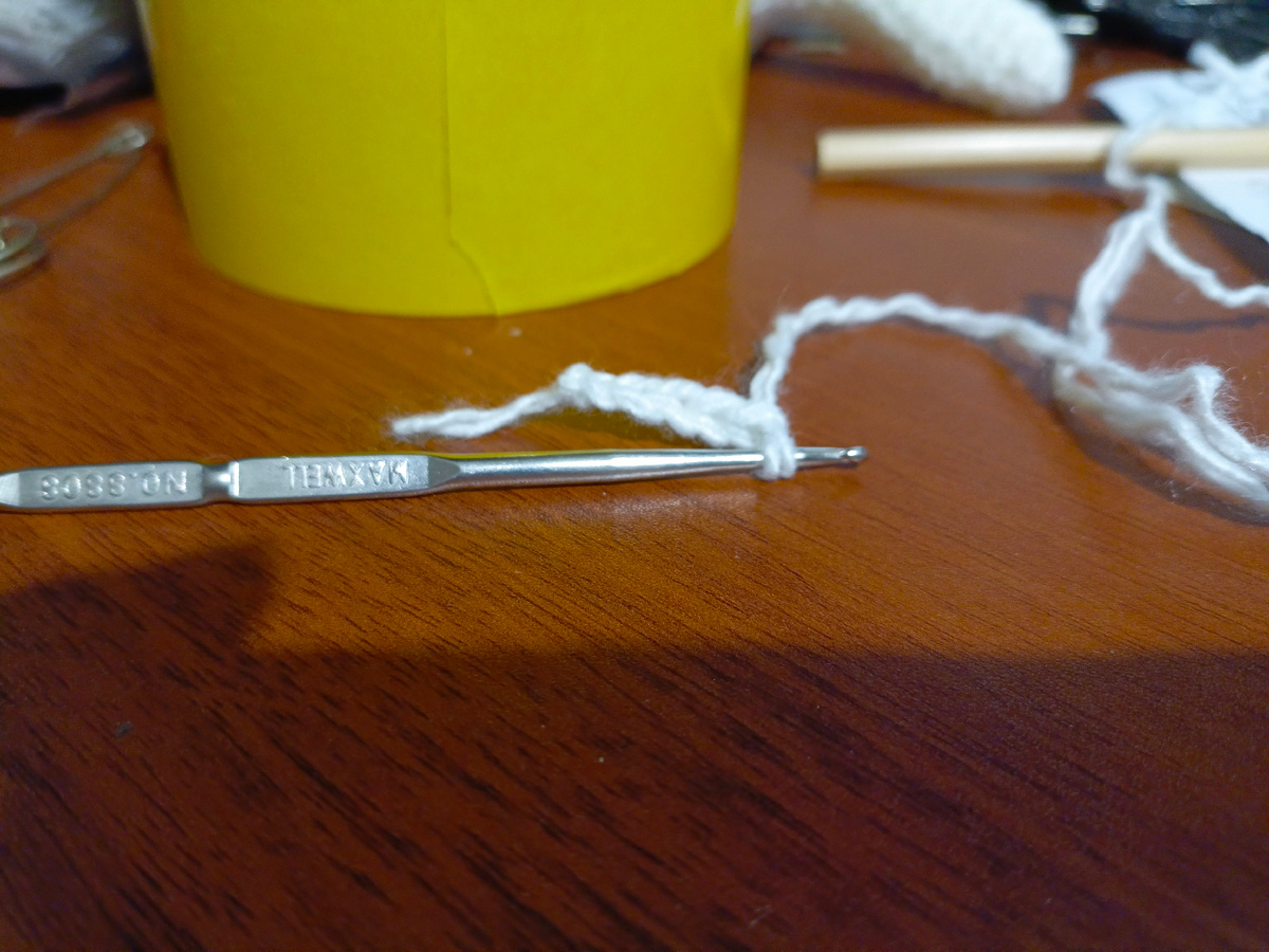 Размеры мухоморчиков 9 см и 12 см. Для вязки мухоморов я обычно беру шерстяные нитки белого и красного (бордового) цвета. На крючок набираем цепочку из 5 воздушных петель и 6 закольцовываем. Далее вяжем, как на схеме ниже. В каждую петлю делаем столбик без накида. Если вы хотите маленький гриб (9 см),то начинаем вязать по кругу больше ничего не прибавляя. И так провязываем 8 см. В последнем ряде после подъема начинаем вязать, поднявшись на 1 воздушную петлю, столбиками с накидом. Имитируем пластинки у гриба. Вывязываем, как на схеме. Прибавляем по 1 столбику в каждой 4 петле. Это первый ряд. Опять поднимаемся на 1 воздушную петлю и вяжем второй ряд. Прибавляем по 1 ст. с накидом в каждой 5 петле. Диаметр круга пластинок из моих ниток получится примерно 7 см. Если же вы будете вязать грибок 12 см, то надо провязать еще ряд, так же прибавляя по столбику с накидом в каждой 6 петле. У меня измерен маленький гриб - он длиной примерно 9 см: ножка 7,5 см и будет еще шл