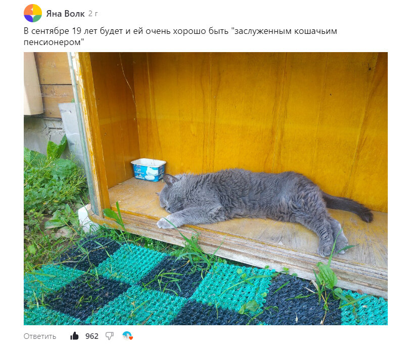 Пару лет назад я написала заметку про кошачью старость, и это до сих пор одна из самых читаемых заметок на канале. Люди в комментариях делятся фотографиями своих разновозрастных котиков, что очень трогательно. 🧡 Спасибо!) Фотографии стареньких котов и кошек можно с полной уверенностью назвать эксклюзивными – такое вряд ли где увидишь. По улицам коты-старички не ходят (уличные вообще редко живут больше 8 лет), в выставках не участвуют, а на картинках в интернете мы с вами видим в основном котят и молодых котов/кошек. Вот я и решила сделать подборку присланных фотографий кошек старше 17 лет (шагнувшую в светлую старость кошку после этой отметки уже можно назвать долгожителем, хотя прожить она может еще лет 5 и даже больше). Все фото взяла из комментариев под своими заметками. Итак: С этой отметки стартует 100%-ная кошачья старость. Начинается возраст долгожительства. Мурзик, прожил 19 лет. 20+ лет – очень солидный возраст. Лично я не видела котов и кошек старше этого возраста. 21-