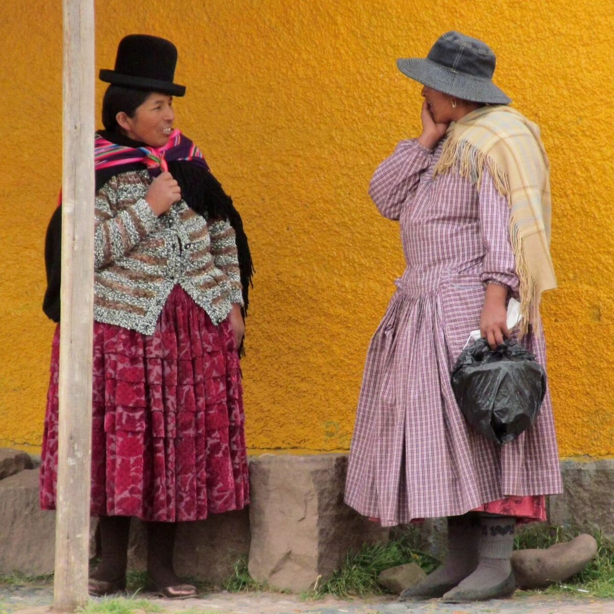 Одна из отличительных особенностей Боливии - местные женщины. Их называют чолa или чолита (cholita). Это женщины индейских племен аймара и кечуа, которые носят шляпу-котелок, характерную юбку "pollera", красочный шерстяной платок и ходят с волосами, собранными сзади в две длинные косички. Раньше чолитами называли индейских девушек, у которых была интимная связь с испанцем. Это считалось как ругательство. Но со временем значение слова поменялось. Возможно, чолит стало слишком много?)) И сейчас оно обозначает женщин, которые ходят в национальной одежде.