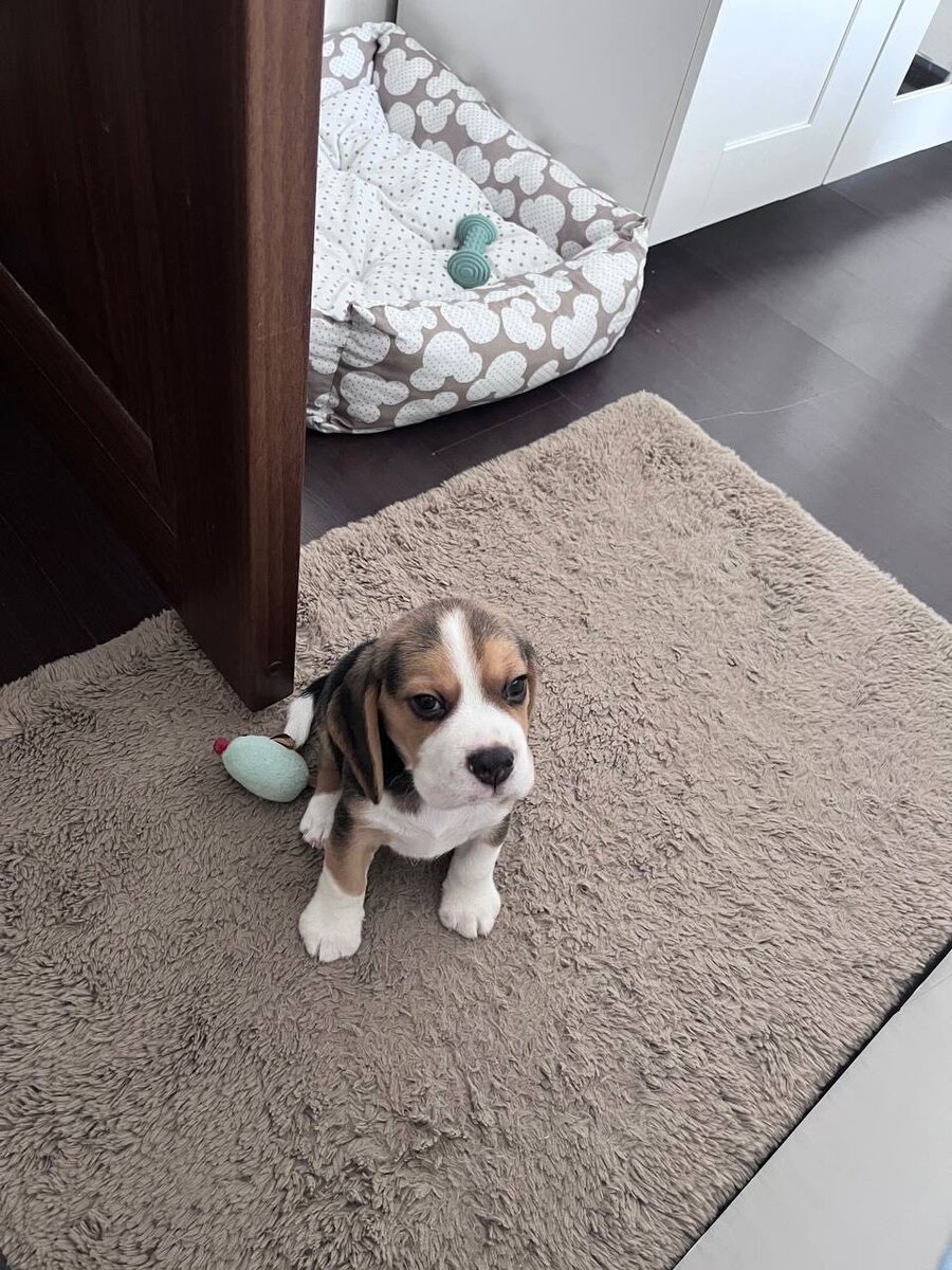 В мае 2023 года Солод попал в семью сына, который давно мечтал о собаке породы бигль, и в подарок ему домочадцы принесли в пледе вот такую милоту. Солод родился 1 апреля 2023 года. Он рос очень активным щенком, любознательным и любящим погрызть обои (да, даже не тапочки, а именно обои с плинтусами). Время шло, щенок подрастал, были поставлены необходимые прививки, что дало зеленый свет к записи на групповые занятия в группу малышей к кинологу. Солод очень полюбил активные тренировки, за любимые вкусняшки готов был выполнить любую команду, что научило его небольшой дисциплине и привело к знанию некоторых команд. Всё шло хорошо, щенок рос в любящей семье, развивался по своему возрасту, но, к сожалению, оставаться дома одному ему не понравилось, сын с женой постоянно на работе, а ему нужно внимание и активный досуг. Как только хозяева за порог, Солод начинал скулить и лаять с такой силой, что в общедомовом чате посыпались бесконечные жалобы от соседей. Было принято непростое, но луч