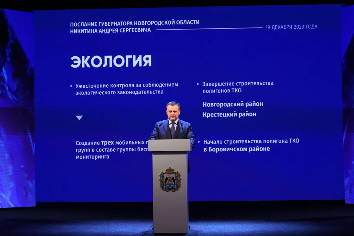 Губернатор Новгородской области сегодня обратился к жителям региона с ежегодным итоговым посланием. «Развивая промышленность, мы не должны забывать о своей обязанности сохранить благоприятную экологическую обстановку. Нет сомнений, что, выбирая место для жизни и воспитания своих детей, люди всё больше обращают внимание на фактор экологии. Считаю необходимым ужесточить контроль и бескомпромиссно пресекать любые экологические нарушения, кто бы за ними не стоял. Прошу наши правоохранительные органы включиться в эту работу – мы окажем вам полную поддержку», – подчеркнул глава региона. Кроме того, Андрей Никитин отметил, что необходимо доработать систему мониторинга за состоянием лесов, природных территорий, водных и линейных объектов, полигонов ТБО с помощью беспилотников. В связи с этим губернатор поручил профильным региональным ведомствам укрепить существующую группу беспилотного мониторинга еще тремя мобильными патрульными группами. В области обращения с твердыми коммунальными отходами