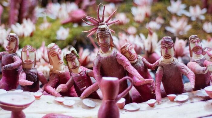 - Привет, я Иисус. - Из Назарета? - Из редиса. Замечательный праздник огурца в Суздале проводится с 2001 года. А как насчёт мексиканской Ночи Редиса, проводимой в Оахаке каждое 23-е декабря как минимум с 1897 года? После завоевания колонизаторы завезли на материк редиску.И как это продавать?!" - подумали фермеры и решили привлекать покупателей небольшими редисковыми фигурками. А в 1897 году власти города официально учредили ежегодный конкурс - всё равно продавцы строгают скульптуры, почему бы не посоревноваться? Каждый год на рождественской ярмарке мастера по редису соревнуются в искусстве создания редисного великолепия. Сначала сюжеты скульптур были связаны с Рождеством: рождение Иисуса, распятие Иисуса и другие сцены из Библии. Но со временем тематика расширилась. Конкурс стал настолько популярным, что власти Оахаки даже создали отдельные посевные исключительно под редис для конкурса! Есть такой редис нельзя, ведь его пичкают химикатами, чтобы он вырос гигантским. Вашему вниманию я п