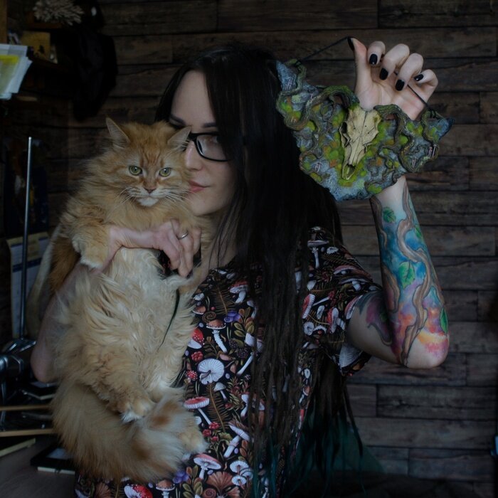 Немного о штуке: это интерьерная вещь, подвеска, сделана мной на заказ (материал - полимерная глина). В основном я делаю украшения, но иногда случается и что-то другое. Немного о коте Максиме: вообще, он влез в это фото без спроса. Я планировала сделать в меру мрачненькое фото, эдакий ведьминский вайб и все такое, но.... кот Максим очень убедительно умеет проситься на ручки, и пока мы с ним наручкались на фотокамеру, световой день, который сейчас ну очень недолог, кончился) А штуку уже надо было отправлять, так что в архивах останется то, что вышло. Штука сольно. Будет подвешиваться за рожки - корни. И детальнее. И еще немного о коте Максиме. Он несколько известен в интернетах по этой фотографии. Спасибо за внимание! Говорят, тут шибко не любят ссылки, так что обойдусь без них. Но в профиле, если вам интересно, есть вся инфа. Пост автора MorrokWind. Читать комментарии на Пикабу.