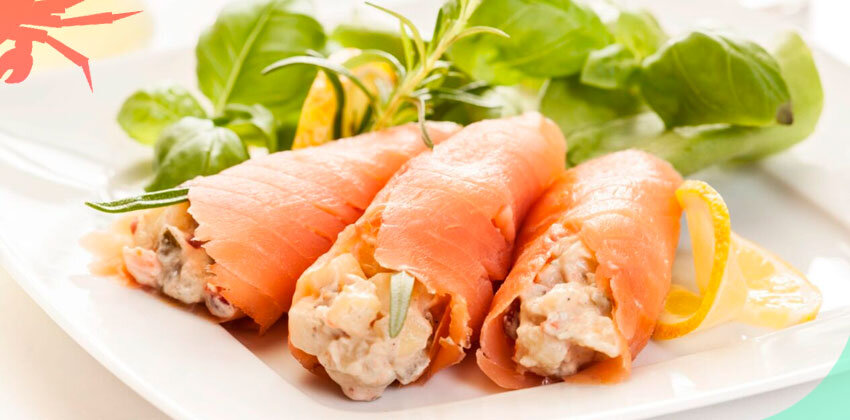 Рецепт: Рулетики из красной рыбы с салатом