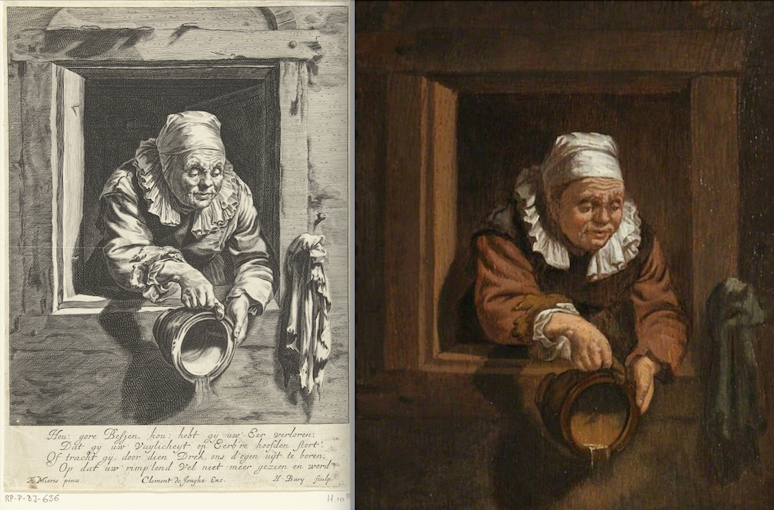 В трактирах той поры не было туалетов. Вообще. Гостям побогаче ставили под кровать горшок (и взрослым тоже, да). А к услугам гостей победнее, в общей зале, был тот самый «туалетный ребёнок». Орудиями труда которого были ведро с крышкой и широкий плащ. По зову клиента нужно было подбежать, подставить ведро и прикрыть клиента плащом от окружающих, пока тот «делал свои дела» в то самое ведро.