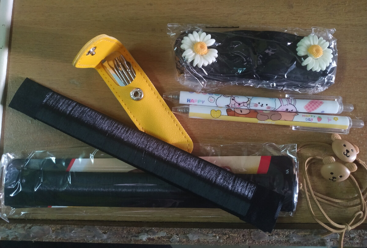 Вторая часть подарков была заказана мной на возвращённые деньги 17-го декабря, и пришла частично 19-го. Вещи все очень нужные. Две заколки для волос, чтобы собирать пучок - у меня были такие давно, две заказала специально, чтобы запас был. Две резинки Амире с мишками. Две ручки - с котятами и мишками. Походный набор для чистки ушей. Пояс. Получилось в сумме около 160 рублей. О поясе отдельно: Регулируется до нужного размера, закрепляется за две боковые петли брюк/шорт/юбки. Можно надеть футболку или тунику поверх него - ничего не выпирает впереди. Перекись водорода. Нашла 3% 1 литр. А то всё 35% и 50% поподалось. Стоит около 72-х рублей. Говорят, она хорошо помогает от плесени, а мне надо отстирать от неё платье. Не получится платье - помою стены в ванной. И из третьего магазина - сыворотка для лица, крем от тёмных пятен и бальзам для губ . Нашла бесцветный и при этом с приятным запахом. Всё вместе около 150 рублей. По текстуре очень понравилось всё, будем ждать эффекта. А ещё купил