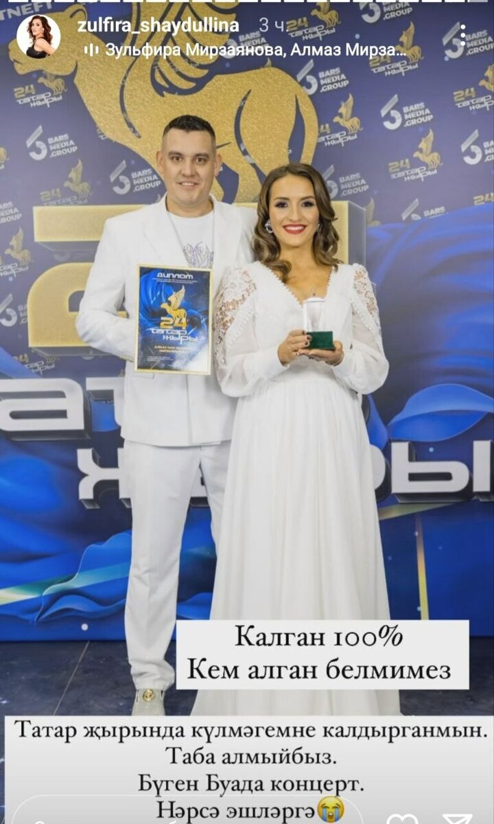 Зөлфирә Шәйдуллина «Татар җыры – 2023» фестивалендә үзенең бик матур ак төстәге сәхнә күлмәген югалткан. Бөтен гримеркалар буйлап эзләсәләр дә, күлмәкне таба алмаганнар. «Калган – 100%. Кем алганын белмибез. Бүген Буада концерт. Нәрсә эшләргә?» – дип аптырап язып калдырган үзенең сторисларында җырчы. «Татар җыры» фестивале, традиция буенча, 16 декабрь көнне «Казан Экспо» халыкара күргәзмәләр үзәгенең Илһам Шакиров исемендәге концертлар залында узды. Бу хәбәрдән соң җырчы, күлмәгенең табылуын хәбәр итеп, фото урнаштырды. Ул, кыска гына итеп, «таптык» дип язып куйган һәм камералар яздырып алган күренешне күрсәткән.
