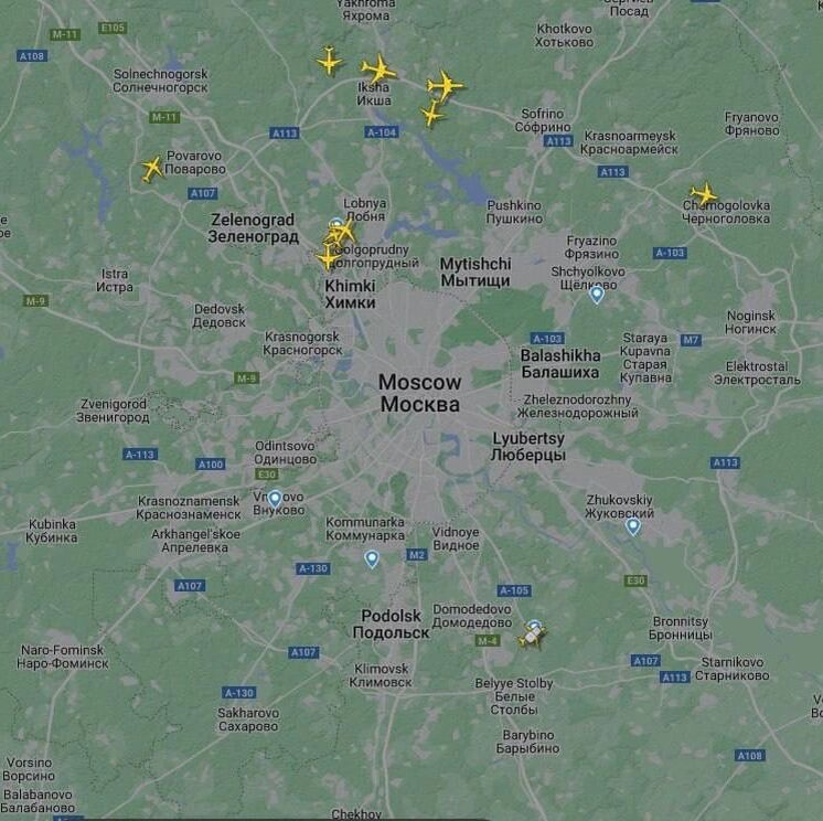 Были задержаны вылеты и прилеты некоторых рейсов в аэропортах Внуково и Домодедово. По сведениям издания "Baza", в действии находится система противовоздушной обороны. Все самолеты перенаправляются в аэропорт Шереметьево. Системой противовоздушной обороны введен в действие план "ковер", который предусматривает ряд конкретных и немедленных мер для участников воздушного движения в целях обеспечения безопасности гражданской авиации. Аэропорт Внуково сообщил, что из-за обстоятельств, не зависящих от него, в 11:54 были временно ограничены прием и отправка самолетов.