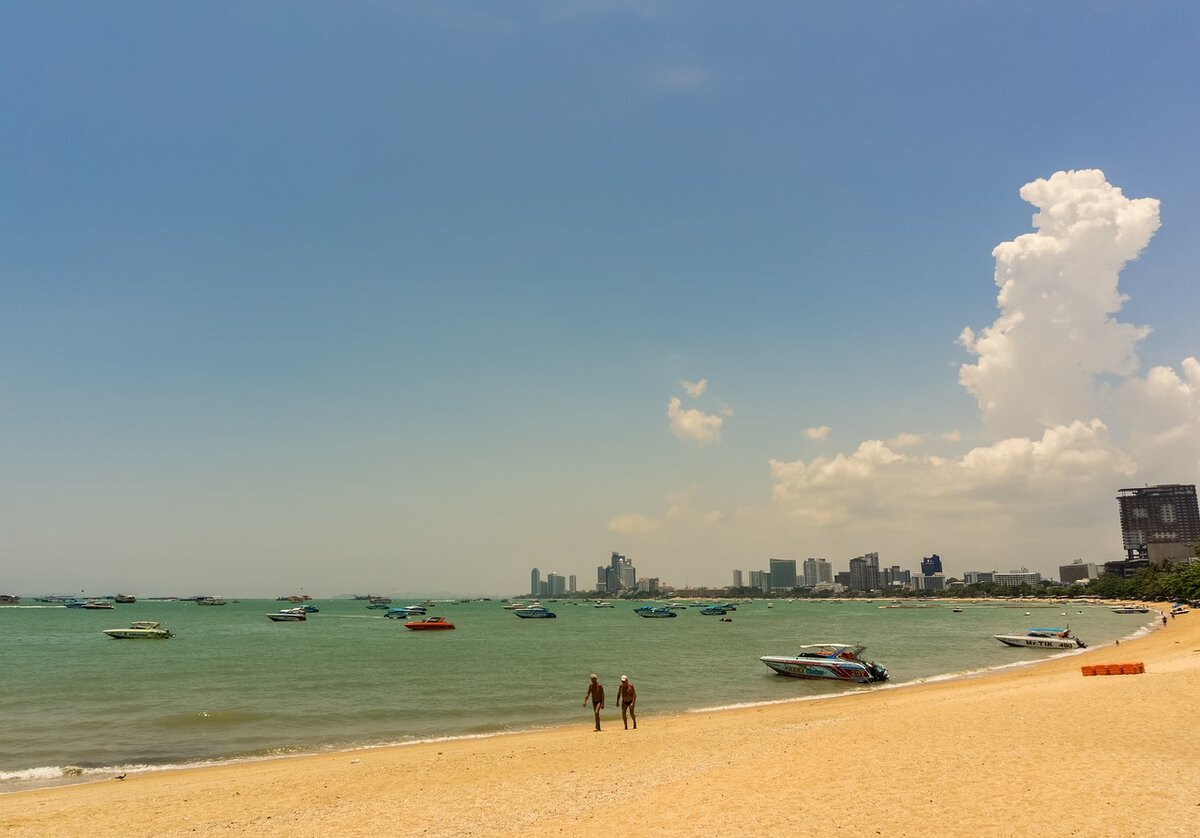 Жили мы на Джомтьене, на этом пляже, собственно, и проводили больше всего времени. На центральном пляже, кстати, ни разу не купались, съездили туда, чтобы чисто отметиться. А вот на Джомтьене реально проводили больше всего времени. И это вполне себе нормальный пляж, песок, чистая вода. Температура воды вообще кайф, спокойно заходишь и купаешься. В целом, море было спокойное, можно было спокойно купаться.